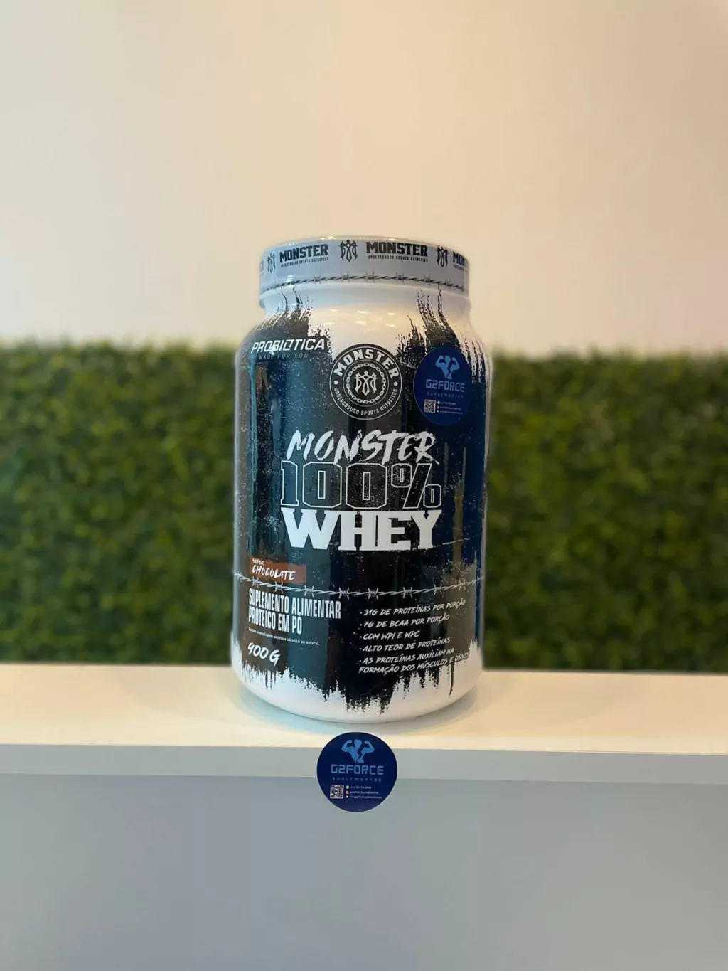MONSTER 100% WHEY POTE 900G CHOCOLATE - PROBIÓTICA - Essa é a MONSTER 100% WHEY ideal para quem busca ir além dos resultados. Inspirada nos melhores atletas e com tecnologia de ponta, a MONSTER preparou esse suplemento para suprir o aporte proteico de quem está sempre preparado para os desafios mais extremos. Um suplemento que está pronto para contribuir na sua evolução física e em treinos, com alta qualidade, além de ser prático, saboroso e de fácil digestão. Proteína concentrada do soro do leite (WPC), proteína isolada do soro do leite (WPI), suco de morango em pó, aromatizantes, emulsificantes lecitina de arroz e soja**, edulcorante sucralose e corantes artificiais amaranto e azul brilhante fcf. NÃO CONTÉM GLÚTEN. **utilizados na fabricação da proteína do soro do leite com a função de deixar o produto instantâneo (fácil diluição).
